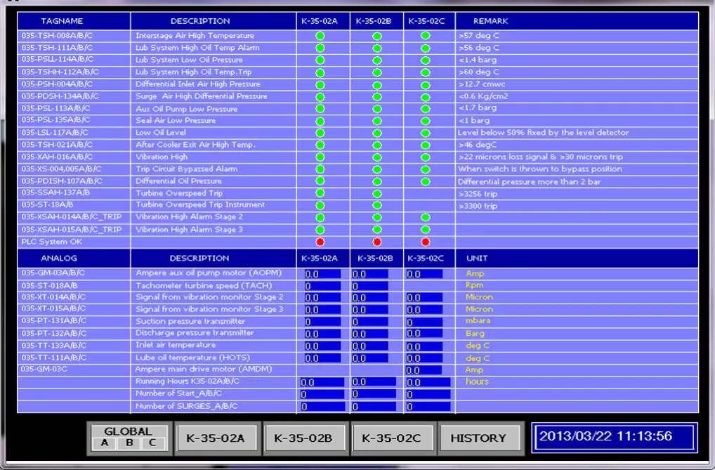 PLC System for Plant Air Compressor Protection System, Oil Refinery Unit, Balikpapan